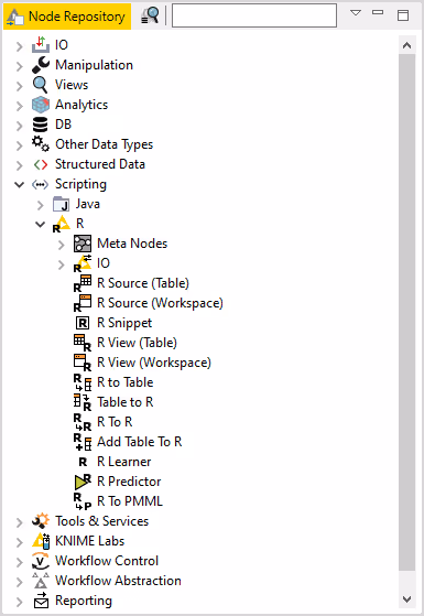 These nodes can be found in the node repository under Scripting → R.