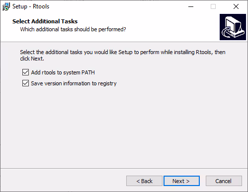 C:\Rtools\). Check the box Add rtools to system PATH as shown in the above picture.